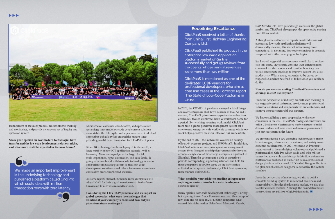 2022年年初,尊龙凯龙时官网进入网页网页版入选外媒Insights Success低代码/无代码开发平台 Top10,创始人、CEO胡柏受邀接受专访并荣登封面人物,他与Insights Success的读者分享了尊龙凯龙时官网进入网页网页版成立的初心、发展历程、当前的行业发展趋势以及他对公司未来的展望。